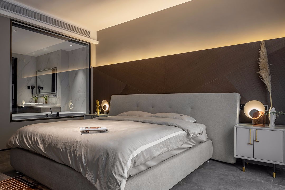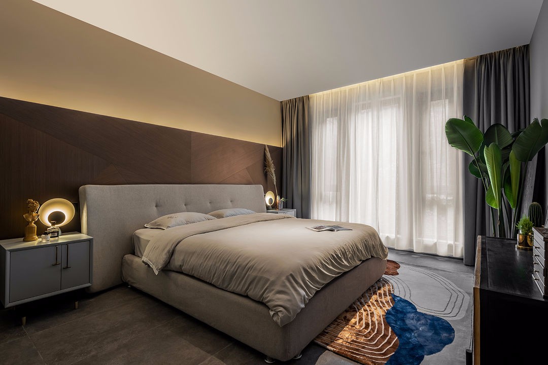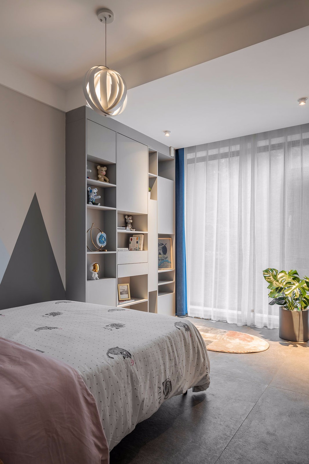在设计中我们给的灰色是暖灰,这样做的目的是为了让空间除了具有平静的舒适感又有一丝温暖,毕竟是家,家一个港湾,在港湾中还应当有一个温暖的怀抱才对,而不能仅仅只是给予一个灰色,一个单纯的灰色。