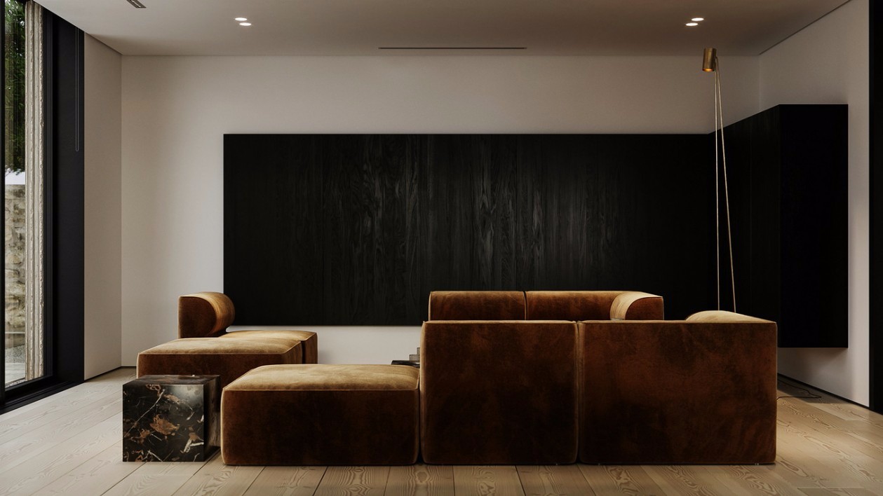 背景墙采用黑色哑光护墙板