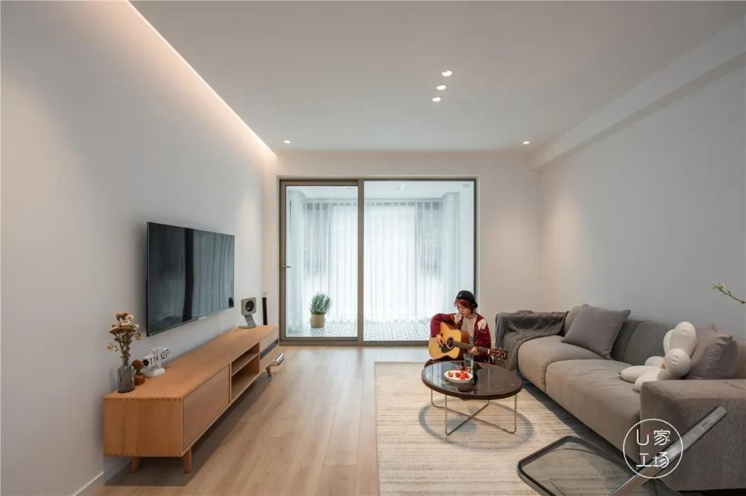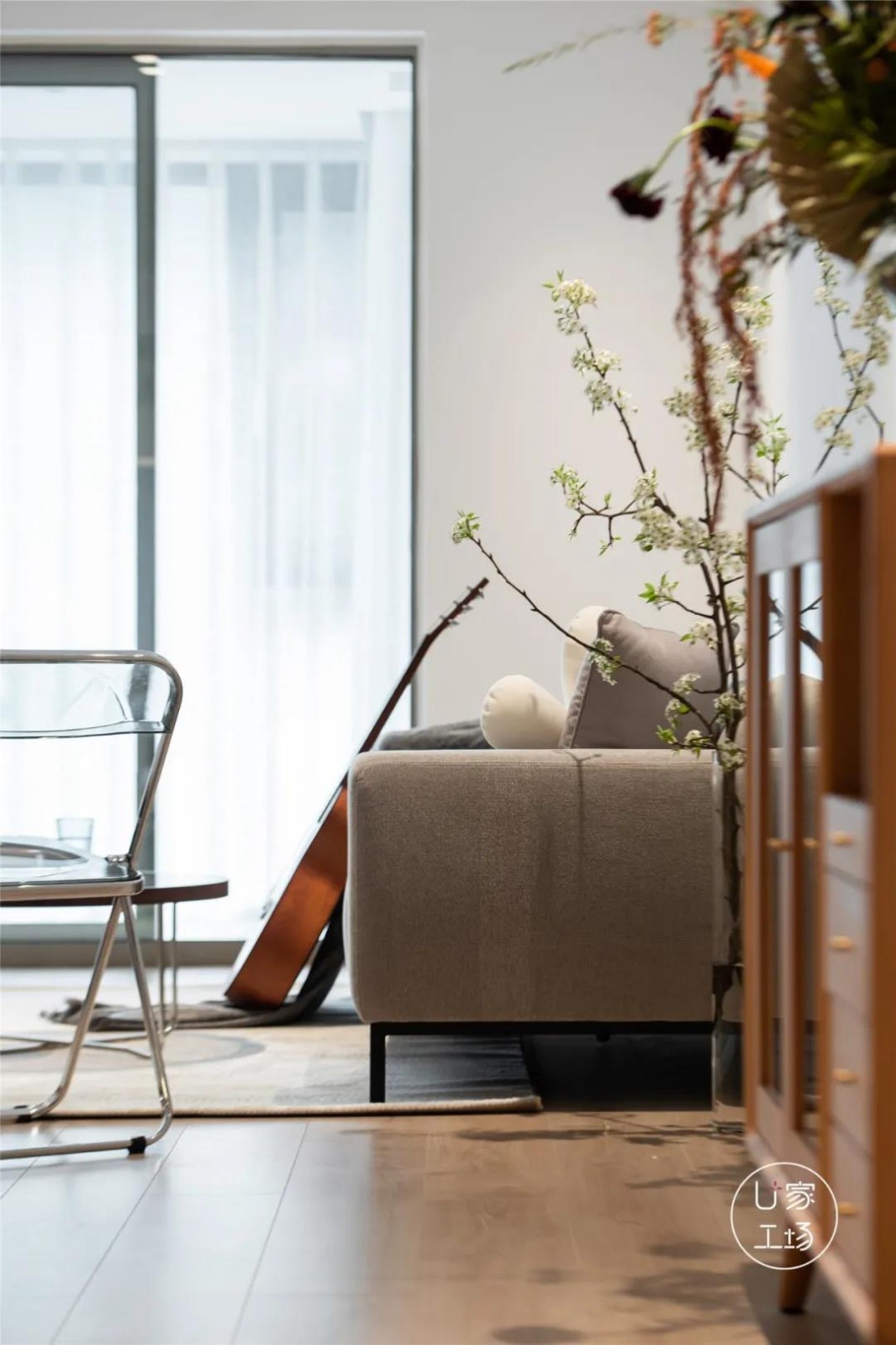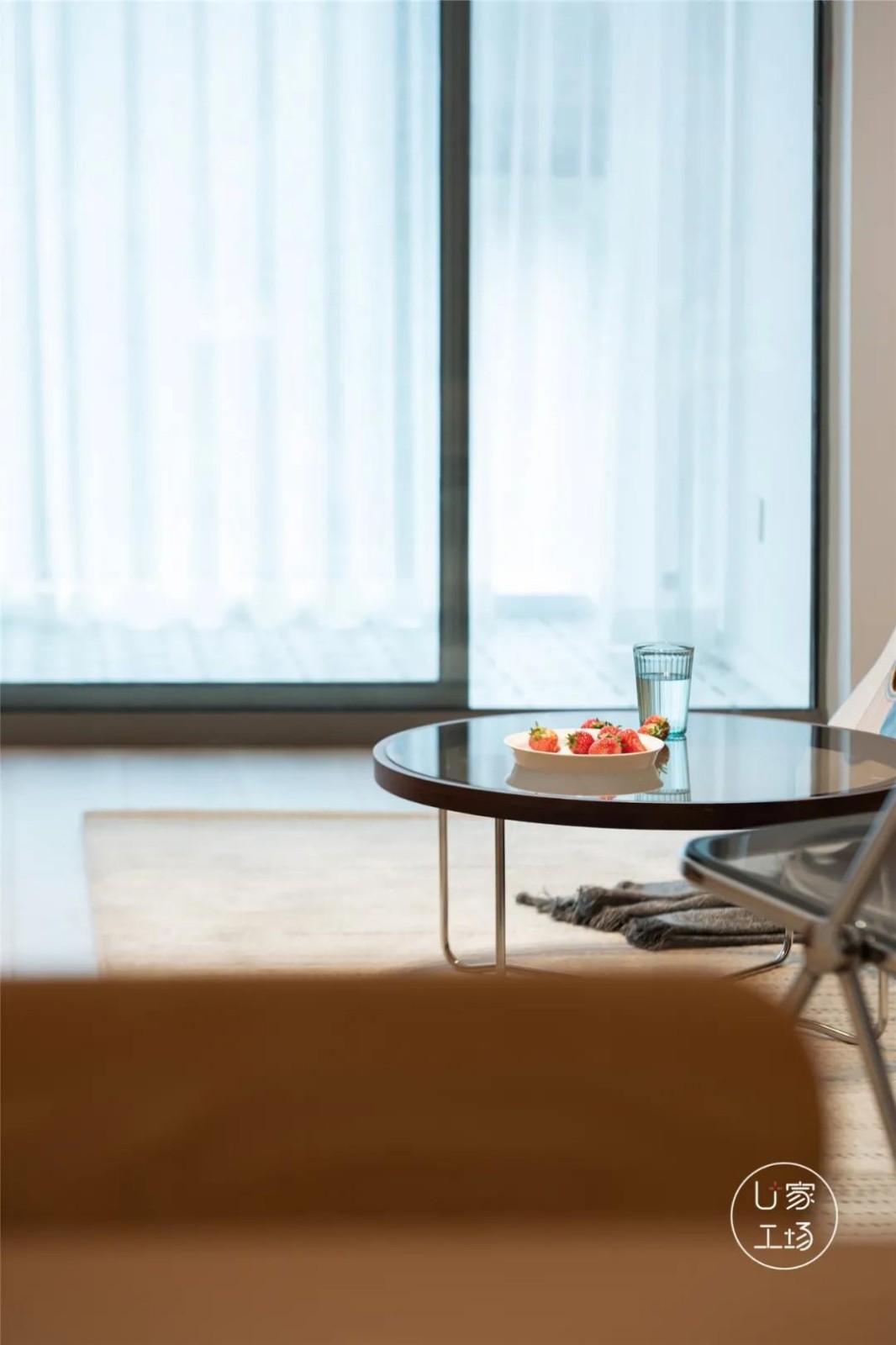 因为临街,所以保留了客厅阳台的推拉门,一方面隔离噪音,一方面可以划分出一个独立的休闲空间。