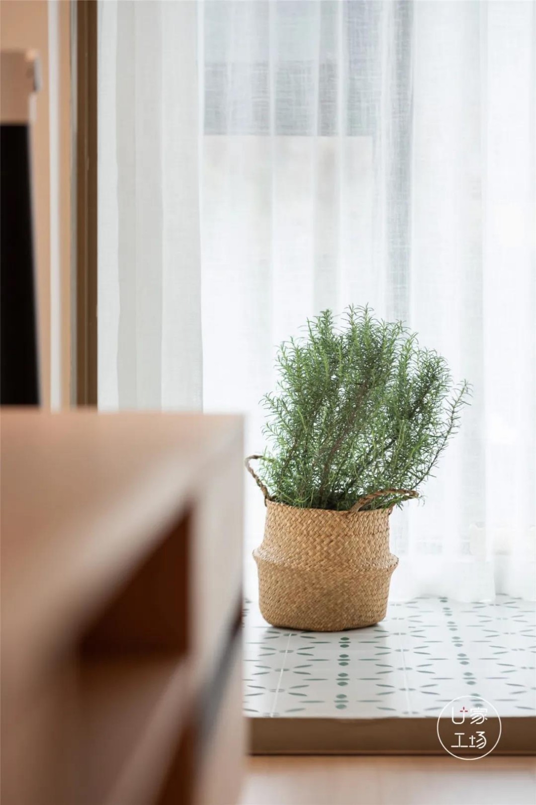 阳台内的地面抬高,全部改造成了榻榻米,关上门,便能拥有一段全然不被打扰的私享时光。 榻榻米的地面铺设花砖,更显轻松活泼的氛围感。