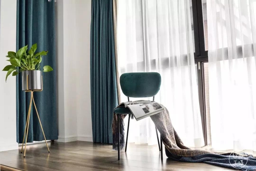 地面抬高后打造了一个休闲的区域,让业主可以在这边惬意的看看书,喝喝茶,享受一个人的美好时光。超大落地窗让采光非常好,窗帘的颜色更是呼应了客厅墙面色,大胆活泼。