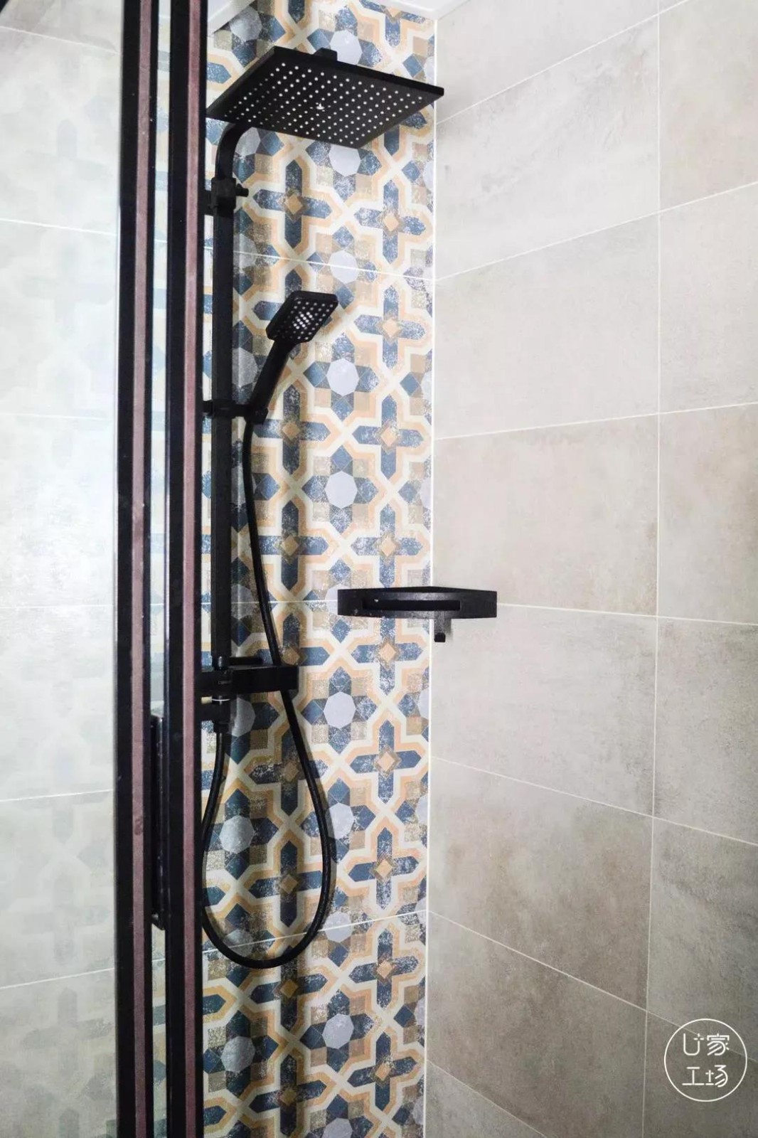 ▲淋浴区使用了小面积的花砖来点缀空间