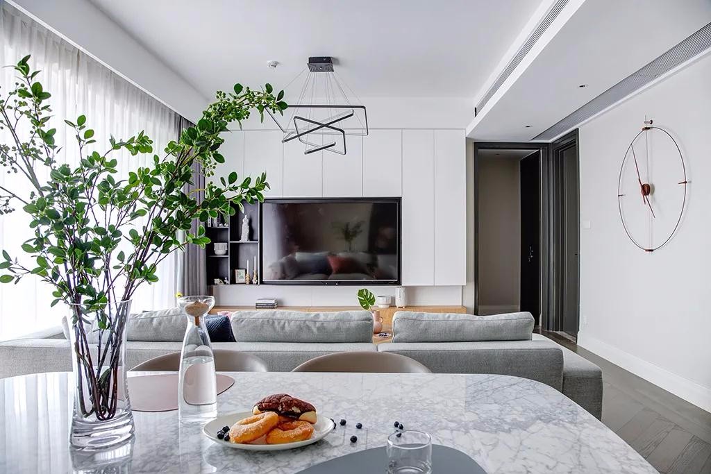 ▲电视墙以定制柜的设计,左侧加入黑色的开放格,摆上杂志、陶艺品、相框与烛台等装饰品,也让空间显得实用而又有艺术感。