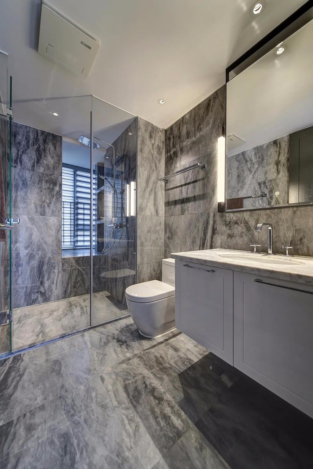 ▲次卫空间风格与主卫保持一致,百叶帘的窗户,整体空间现代舒适而档次。