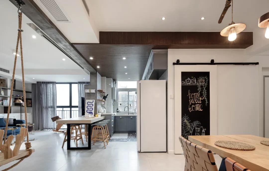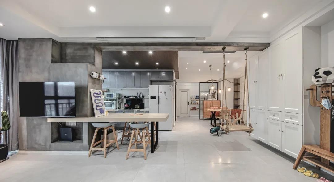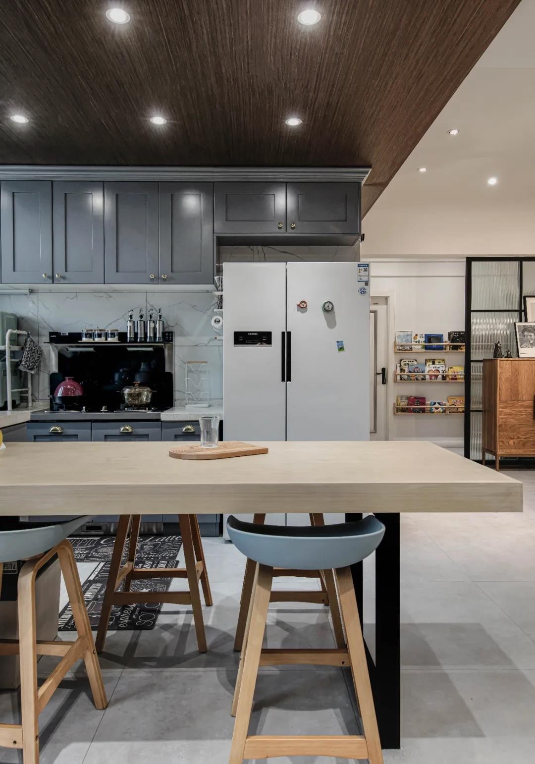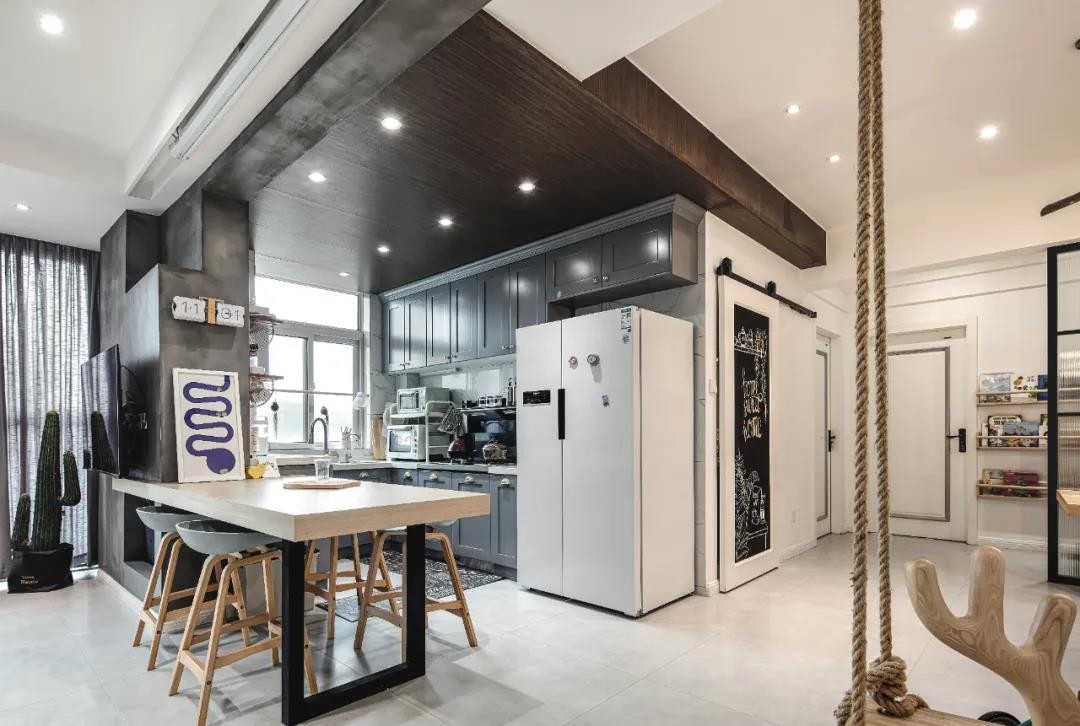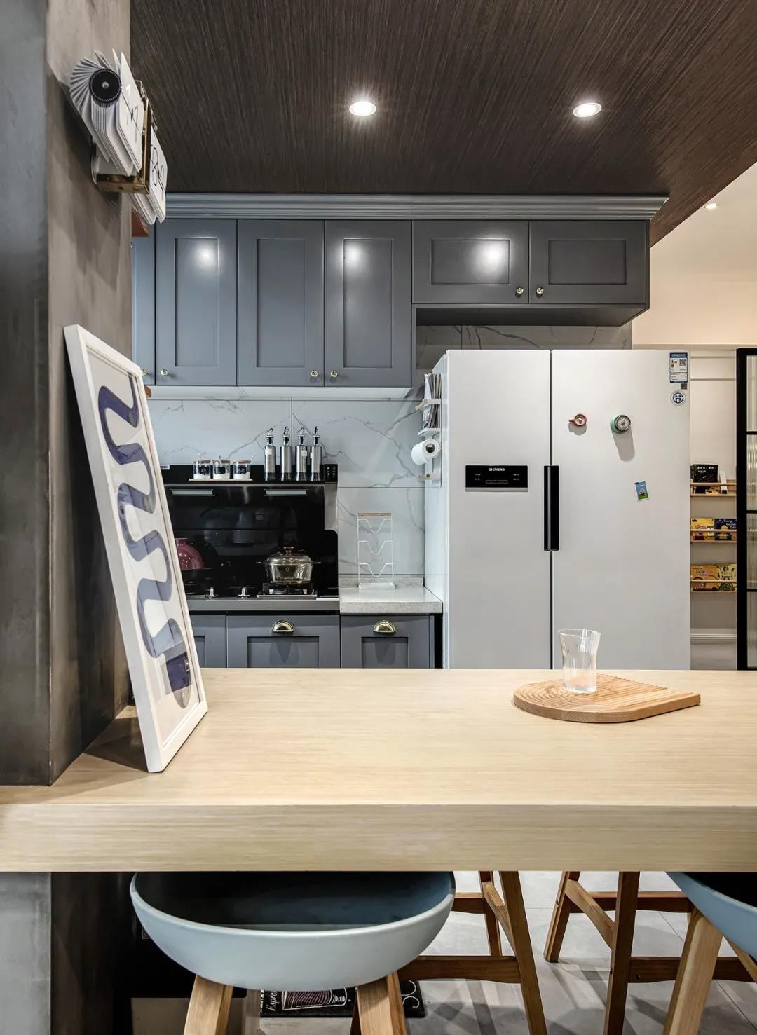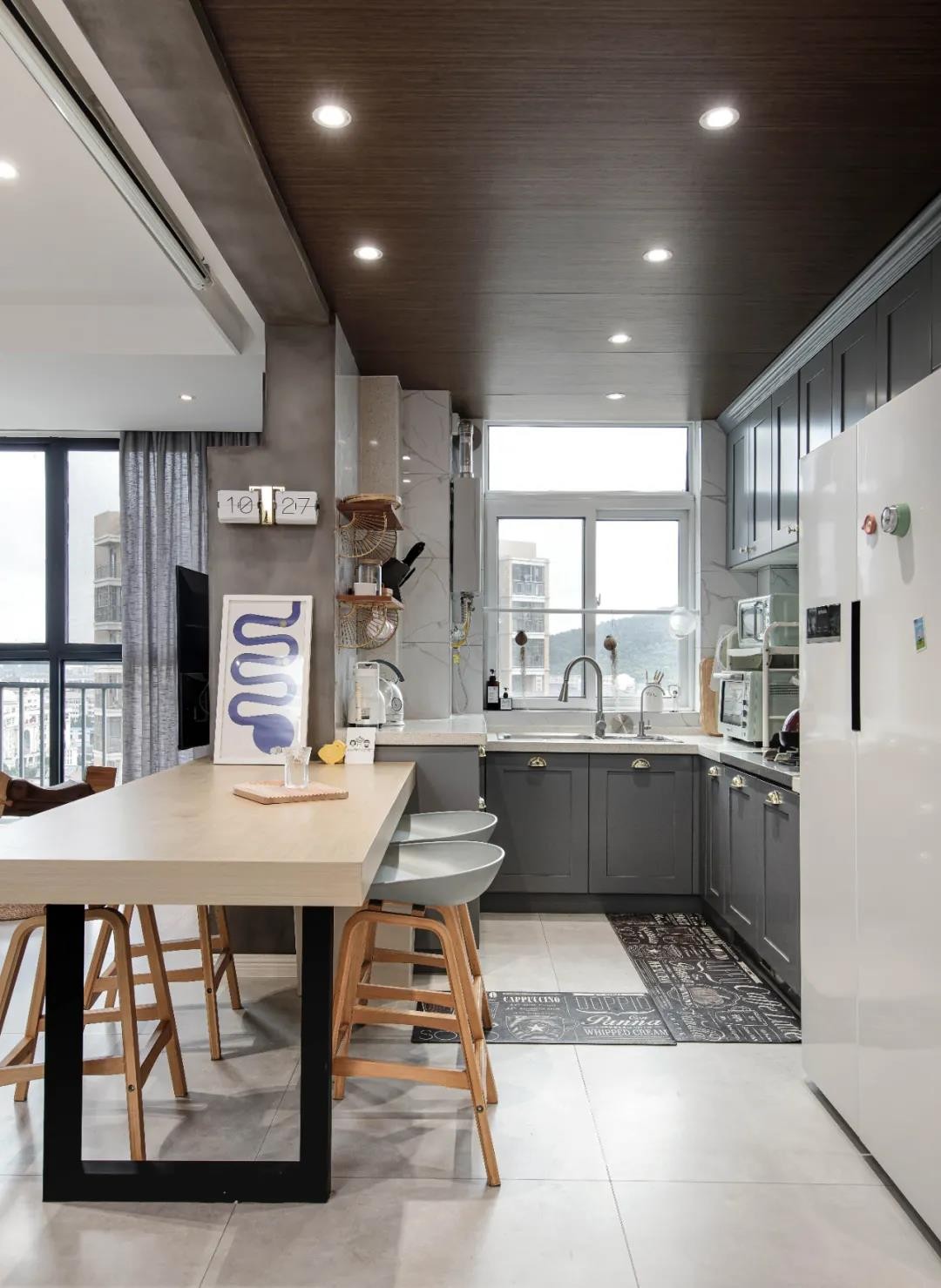 开放式的厨房,彻底让女主人告别了“孤独式烹饪”,方便随时使唤老公。一个人带娃的时候,也可以兼顾在客厅玩耍的孩子