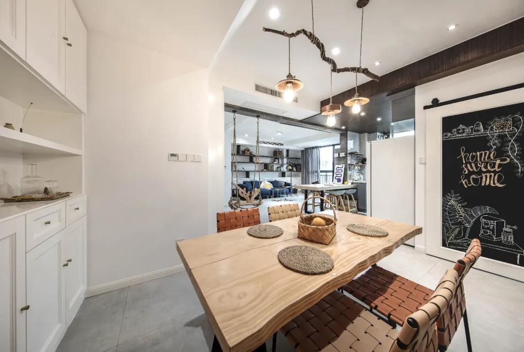 餐厅的吊灯是拿枯树枝自己DIY的,为餐厅增添了一丝大自然的趣味。