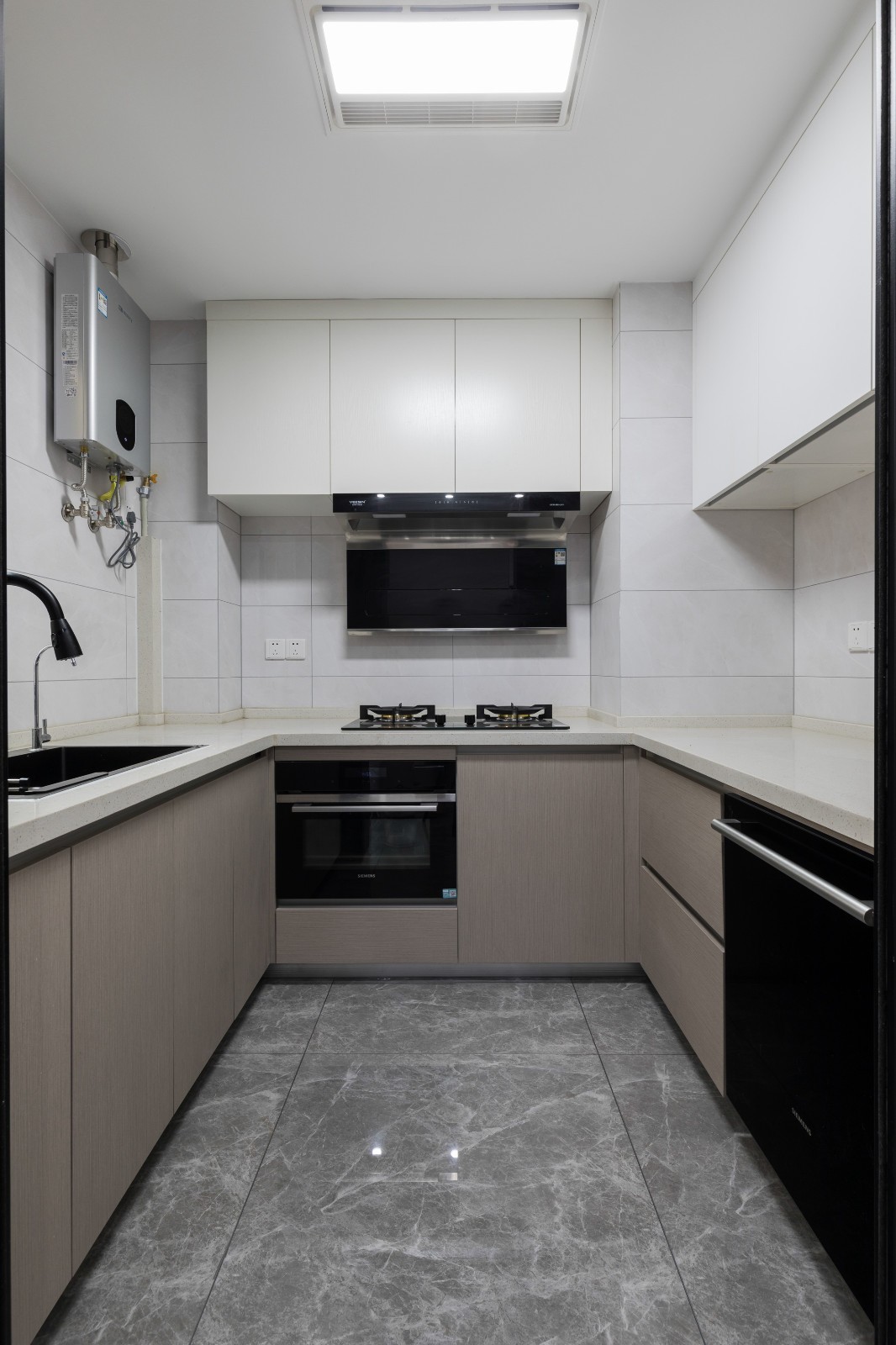 U型台面使空间得到醉大化利用,留出超大台面空间:洗菜—切菜—炒菜—出锅,一气呵成、动线流畅。