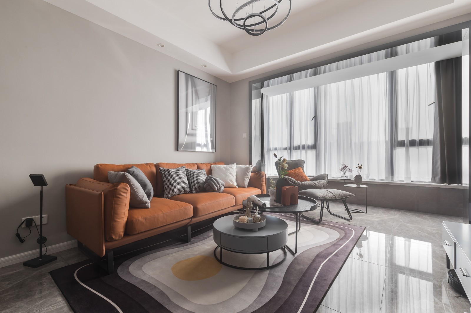抽象云层地毯简约低调,不至于让沙发过分张扬,短绒的地毯面料方便清洁。