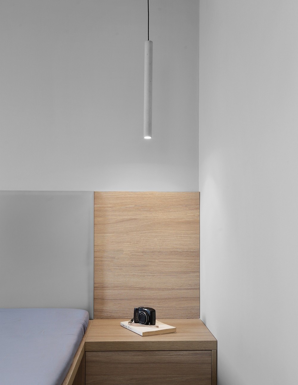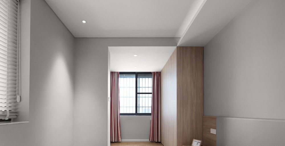 用源自大自然的原木,打造主卧床柜一体的格局。明亮淡雅的主卧是他们最爱的场所。当清晨在彼此的怀里醒过来,阳光经过百叶窗的切割,照射洒落到这柔软的床上,充斥着满满的暖意与爱意。