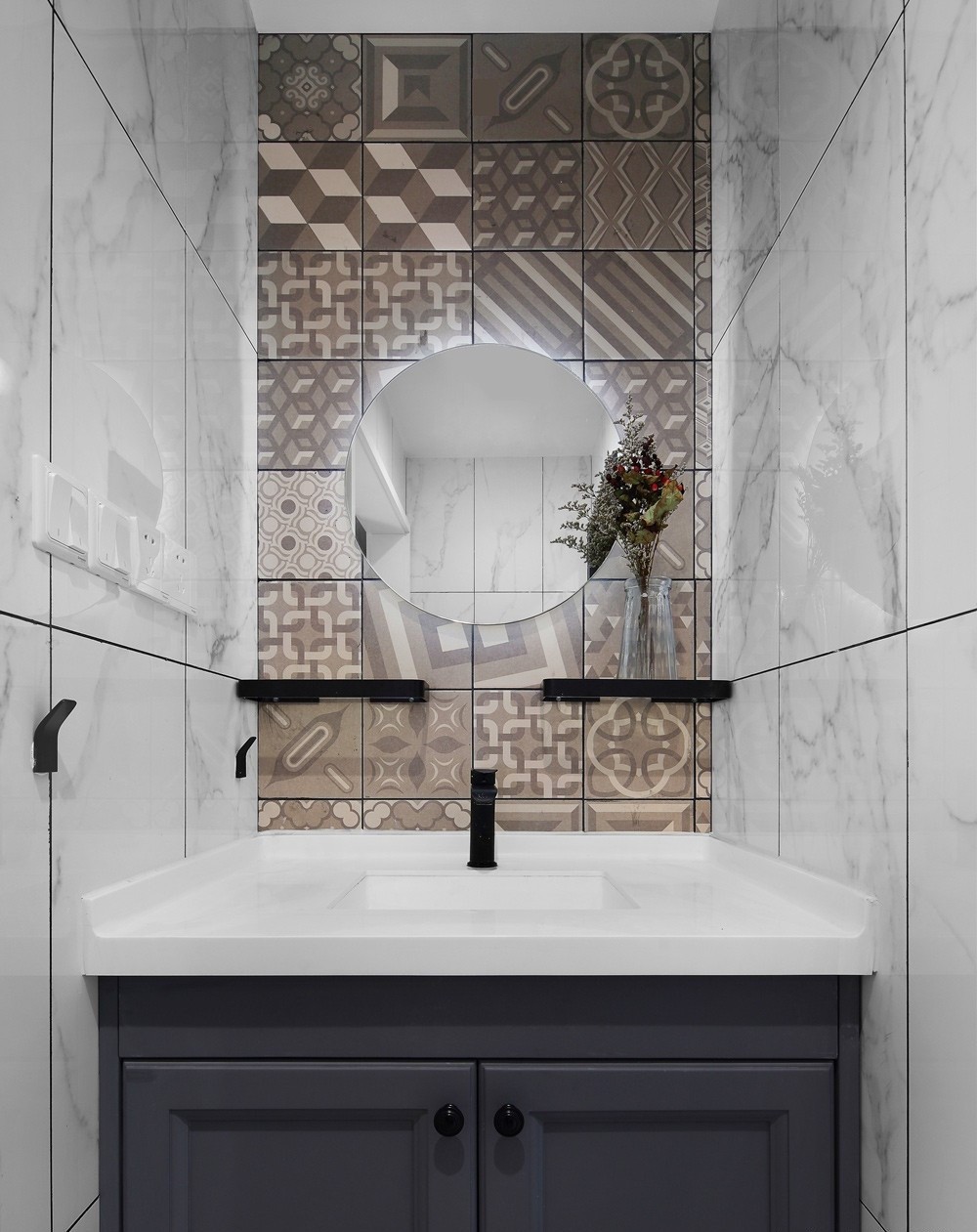 小小的浴室却满足了他们想要的三分离格局。小花砖的点缀,打造了时尚又复古的空间效果。