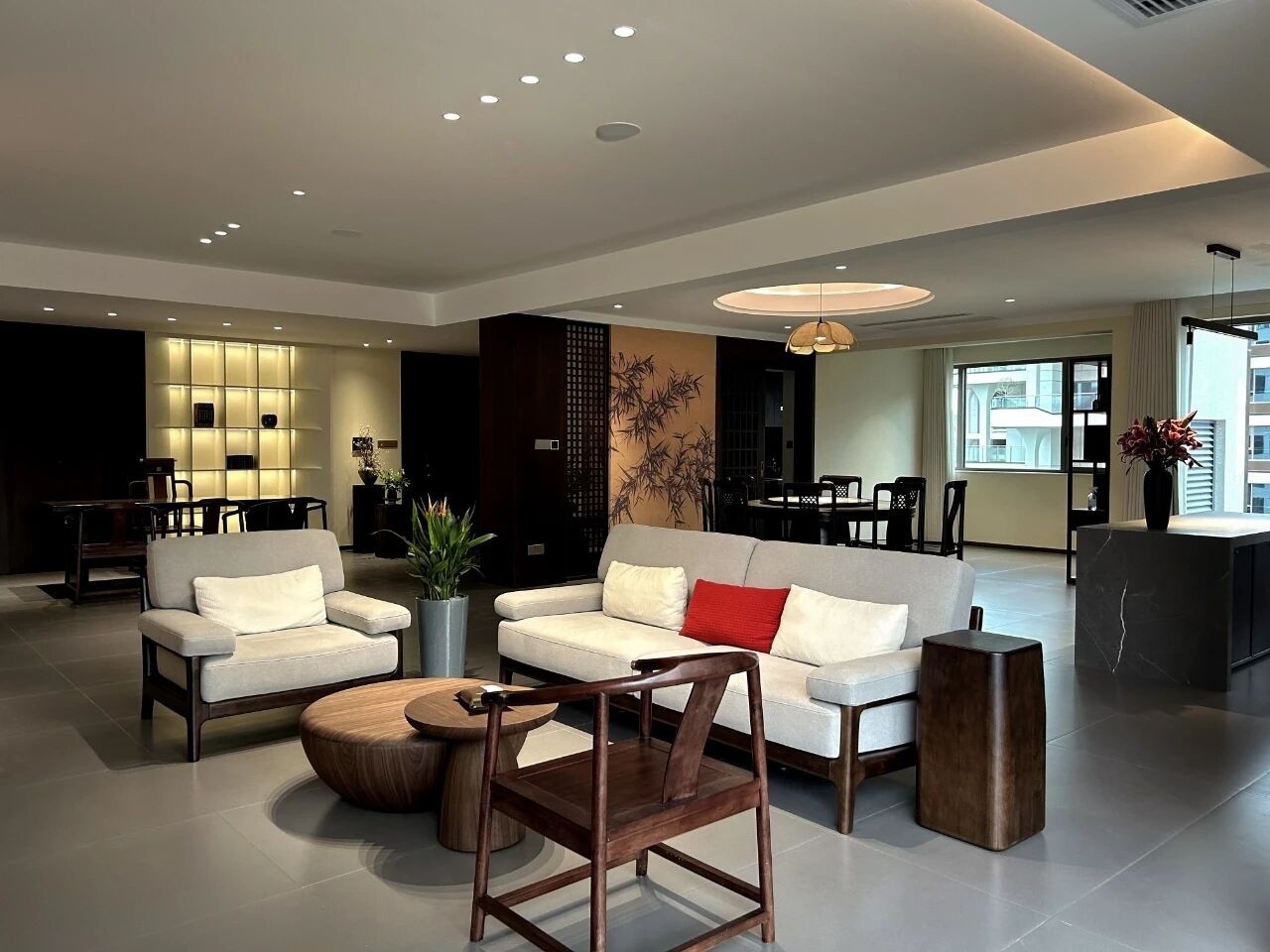 与客厅巧妙衔接的观景区书桌一体设计,是这个家满含巧思的暖心亮点。绿植造景的自然气息与复古木椅的温馨质感相融,既辟出一方能静享阅读的惬意小天地,又让空间实现了多元化利用,这般设计让居家的每一刻都浸满舒适与温情。