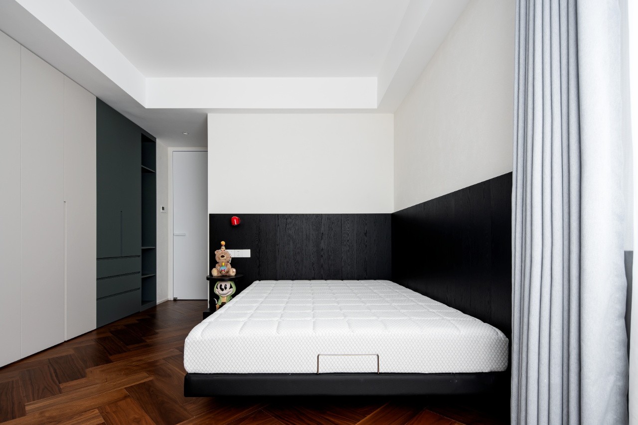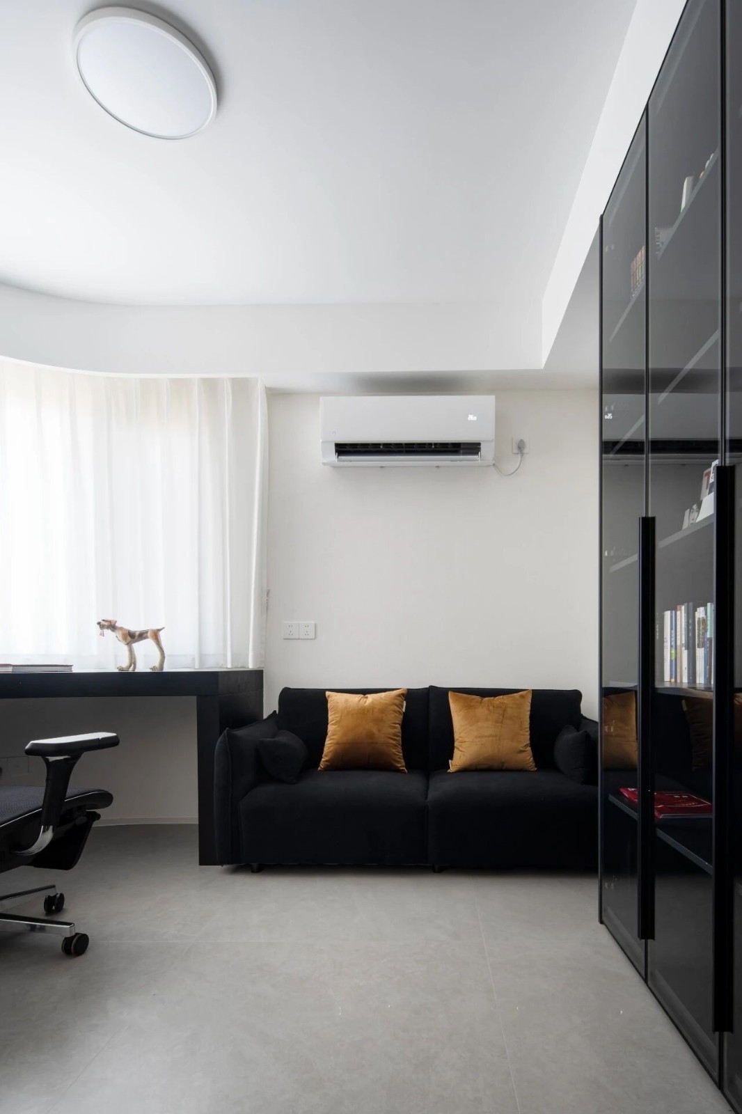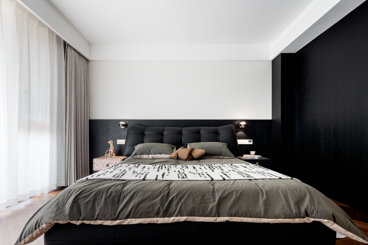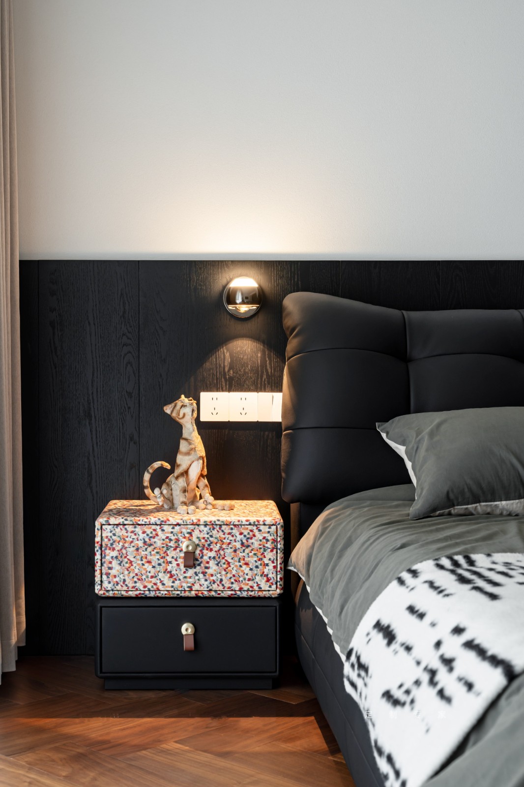 次卧整体基调依然简约至极,黑白灰配色清爽雅致,氤氲出富有静谧舒压的空间氛围。
