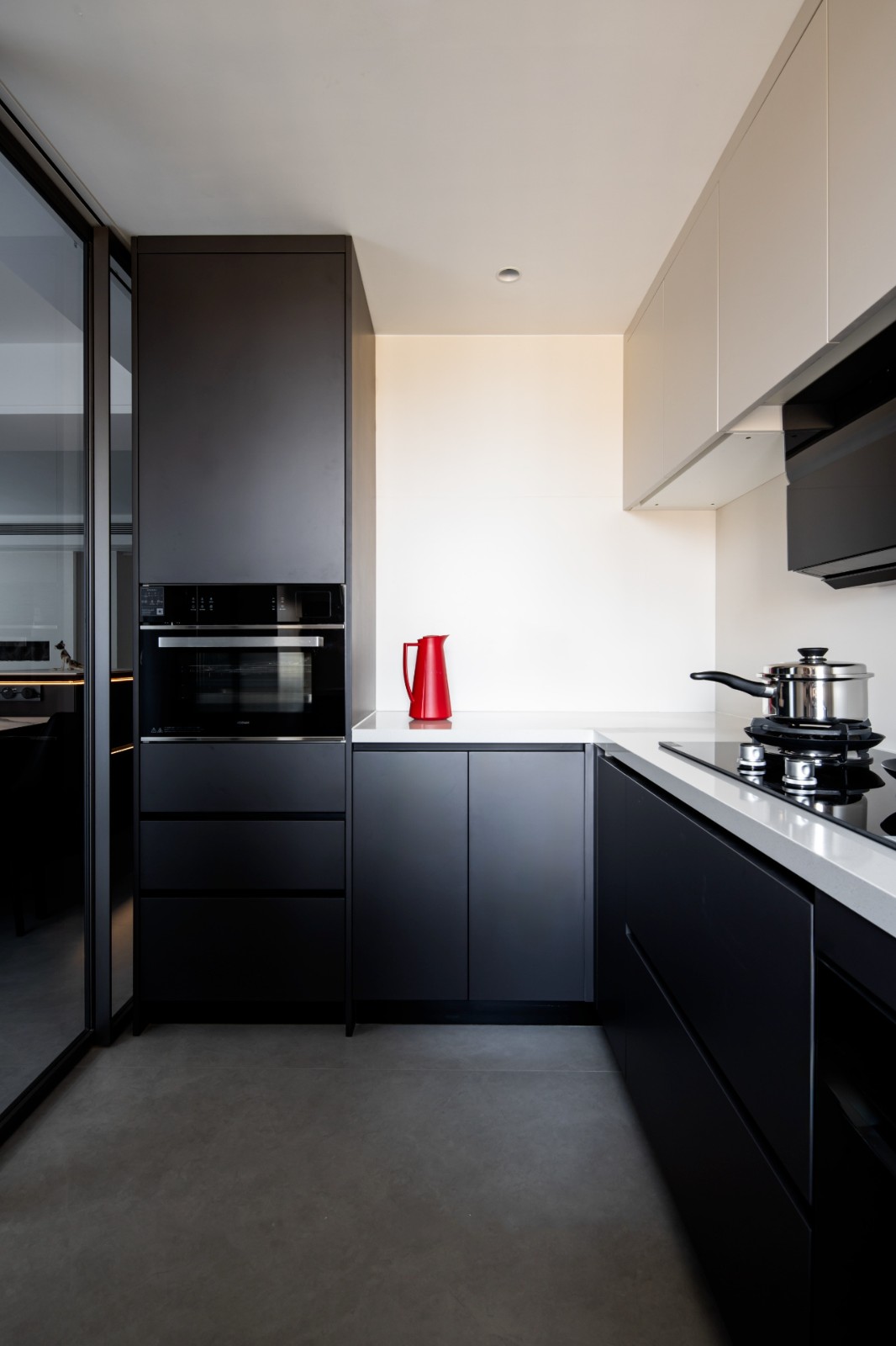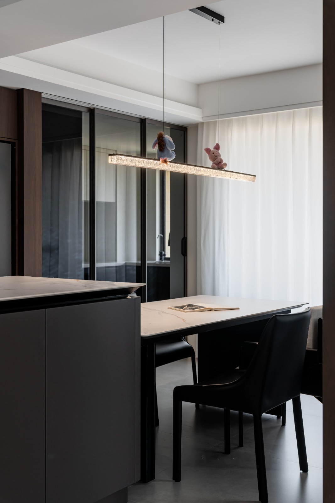 厨房门换成玻璃移门,能有效阻隔烹饪产生的油烟,也赋予餐厨空间开放通透的属性。