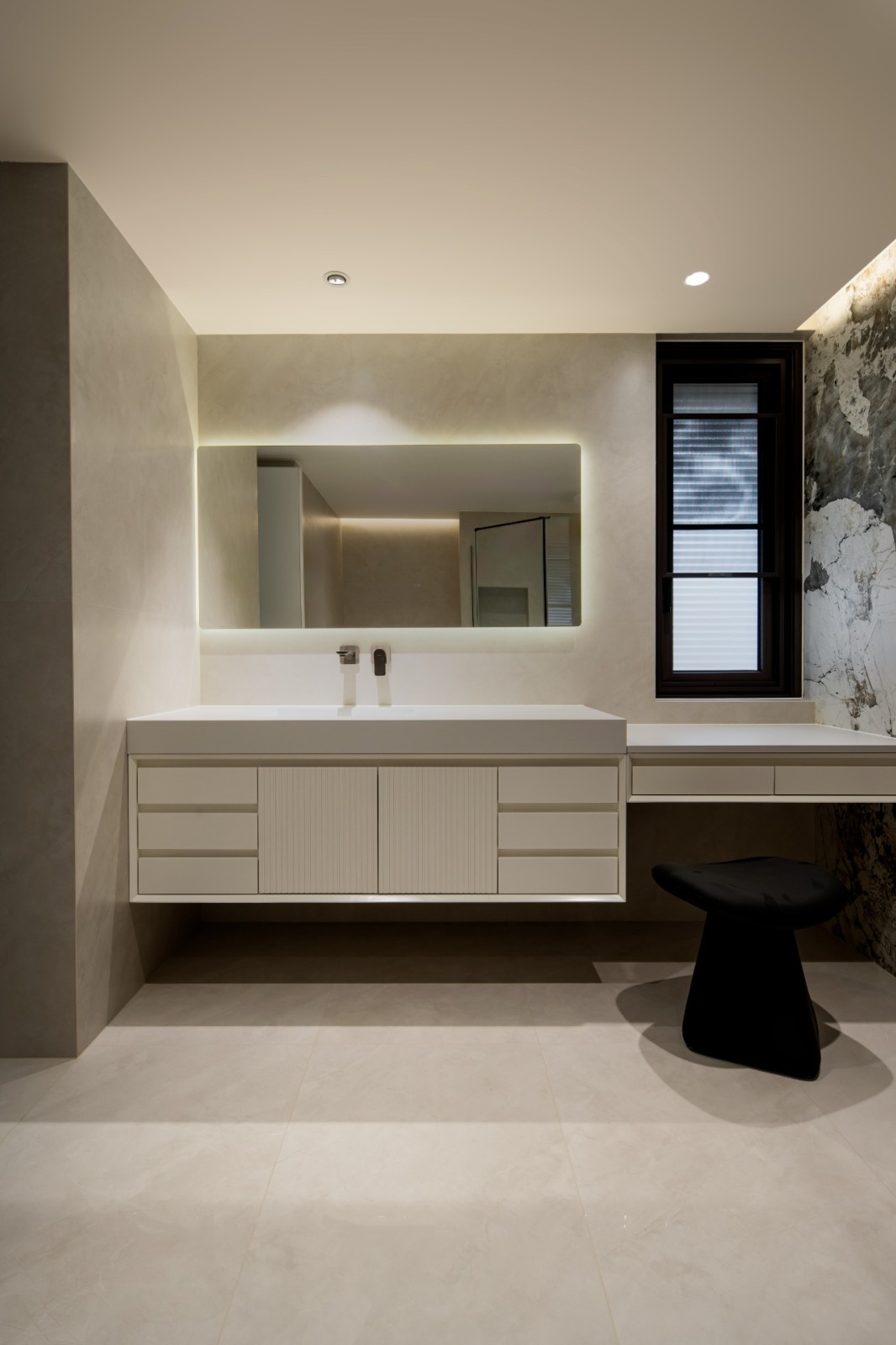 我们根据实际情况进行三式分离布局,并且将洗漱、如厕、淋浴区三大空间分区安排,既保证区域的隔离又能保持卫生间整体的美观性。
