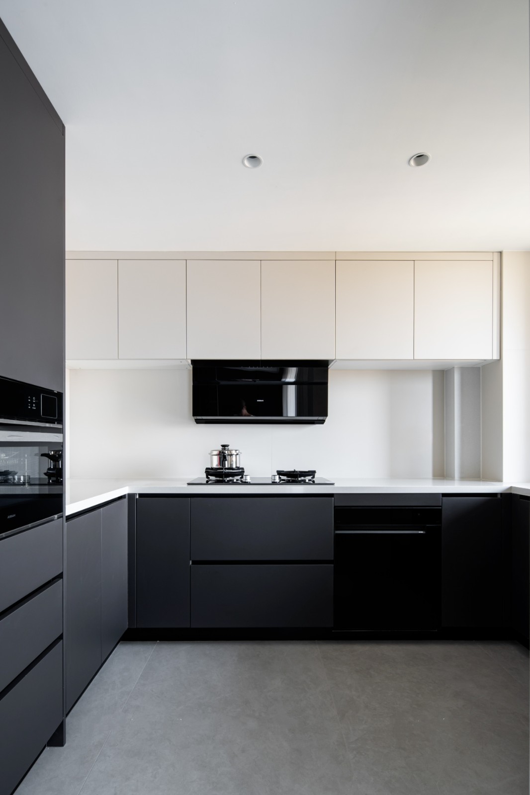 厨房设计成U型台面,让三个功能区域形成一个相对合适的距离,洗菜区、烹饪区、操作区能够根据实际需要进行分区