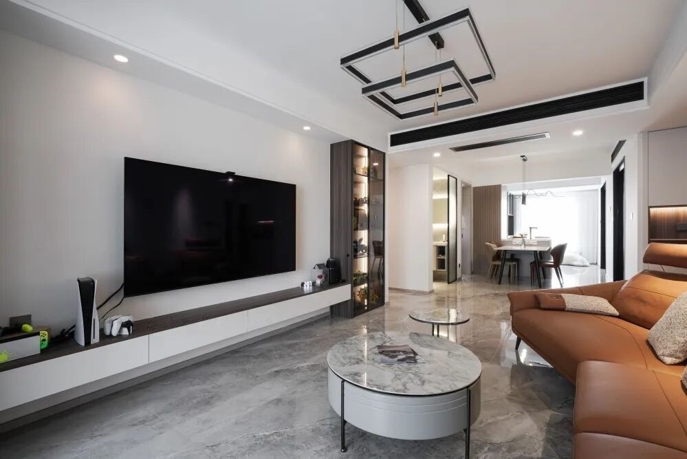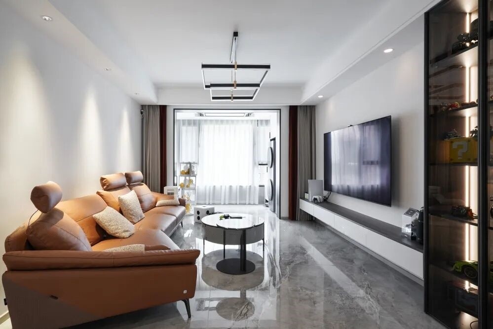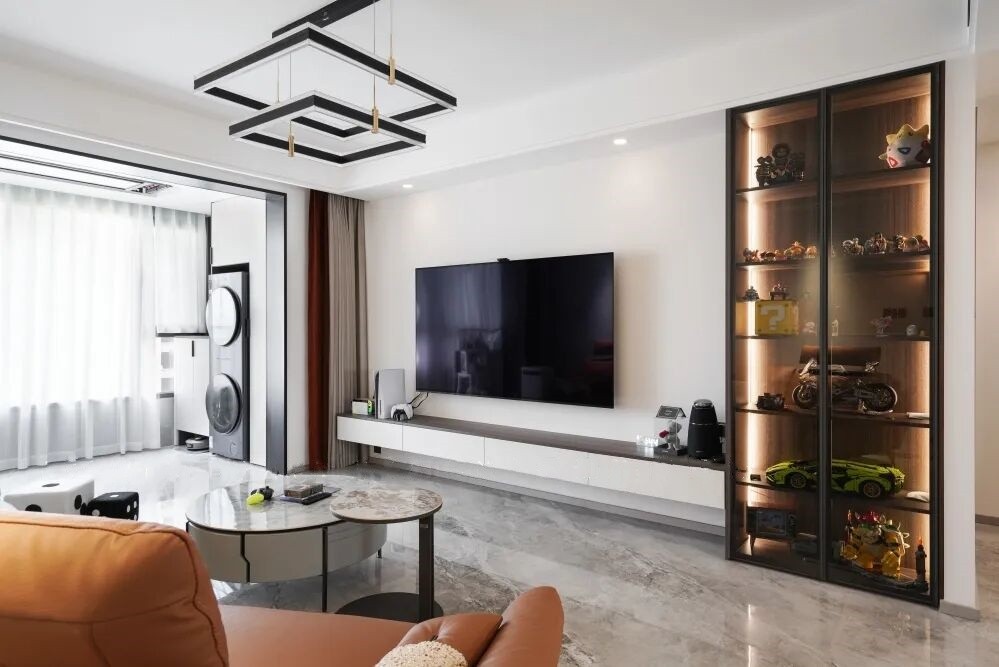 由于业主有比较多的手办,电视柜设计的展示柜可以用来展示业主的手办、高达等玩具,既能展示业主的兴趣爱好,又能增加设计感。体现业主热爱生活、追求艺术的生活态度。