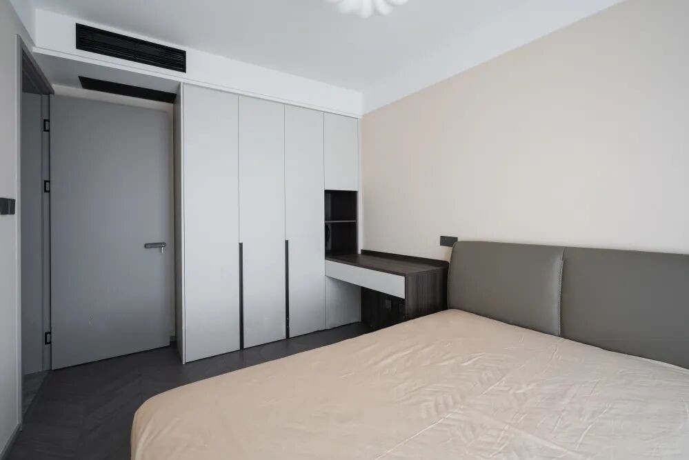衣柜书桌一体式的设计是整个空间的亮点所在,增加储物空间的同时不影响动线流畅。