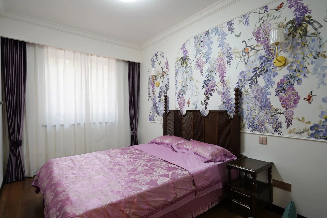老人房更注重轻松舒适,与过去的生活习惯紧密相连。在床头背景用弧形PU线条让美式复古更有活力,搭配床头罗马柱,更具复古感。