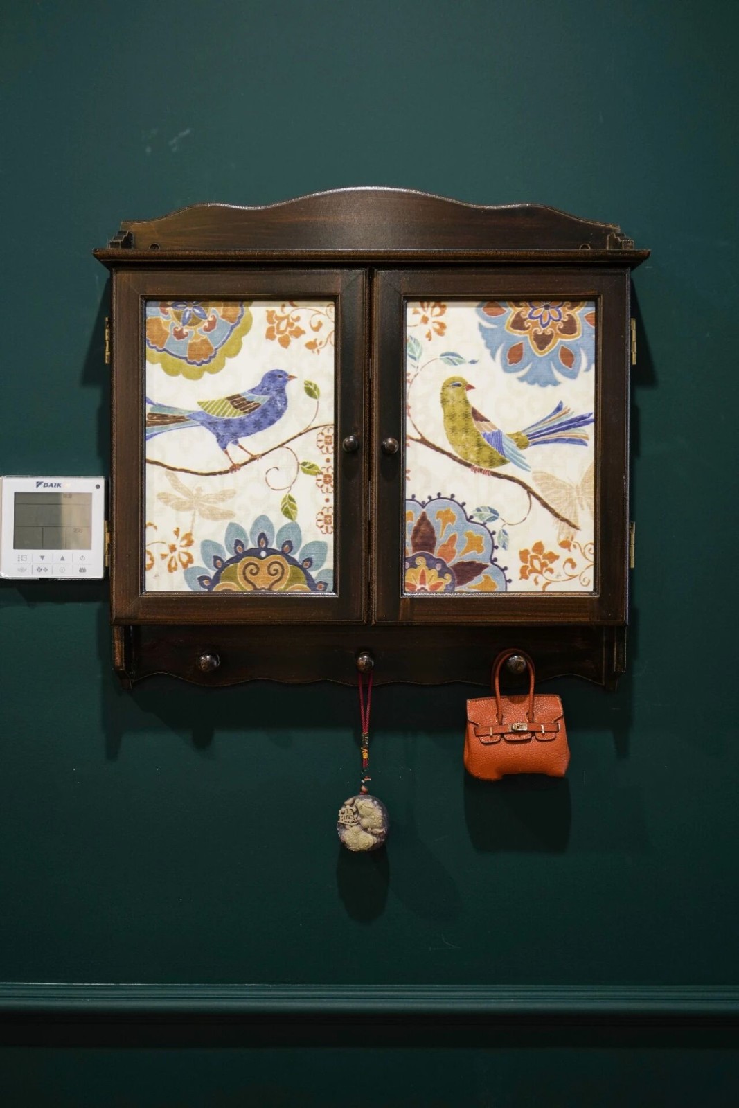 入户左手边的墙上,这个独特的复古装饰盒子,也不要小瞧了,其实是用来隐藏电表电箱的。