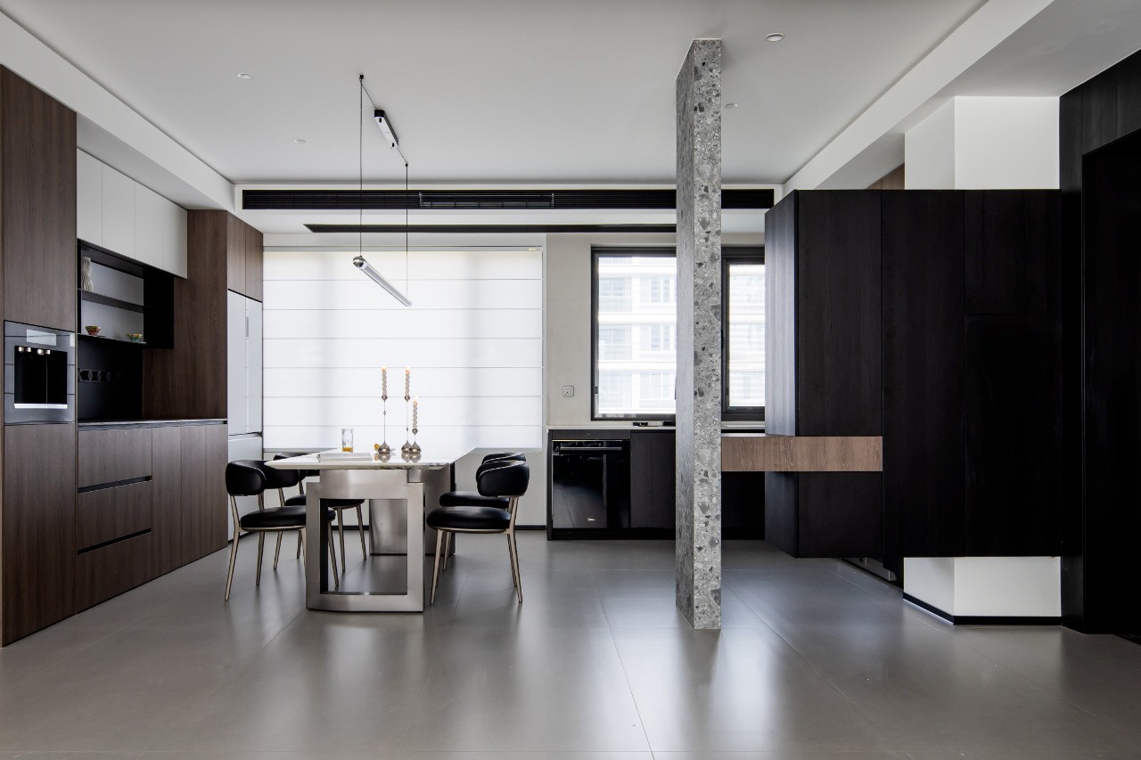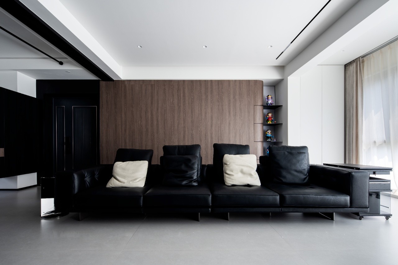 冷峻的黑白灰与温润的木饰面有序组合,在利落线条的加持下,意式极简风的***韵味呼之欲出。