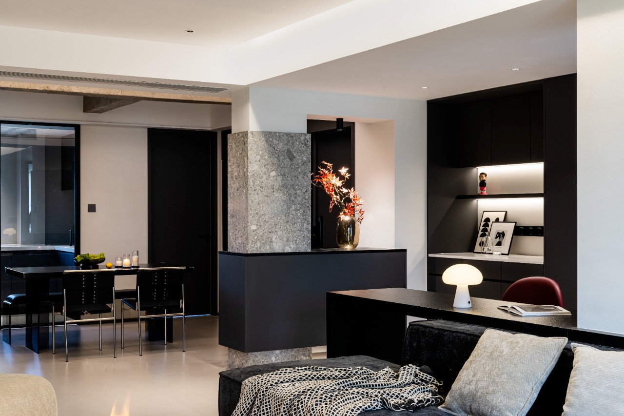 步入这个家,感受到的是纯粹的黑白灰贯穿大面积空间,与局部出现的***、彩色相映成蕴,极具艺术意境,身心便不由自主得以缓缓沉浸。