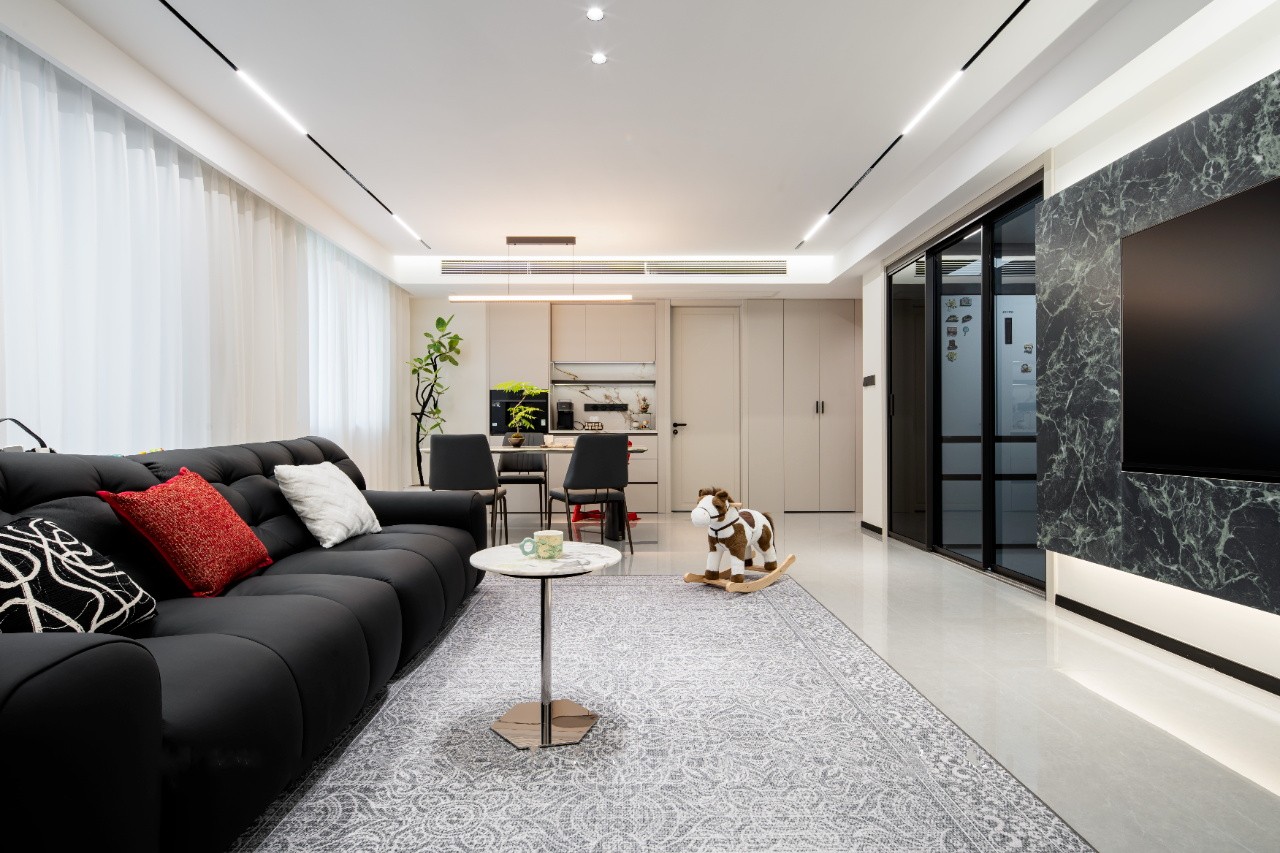 无主灯设计、留白型电视墙,都将极简风格具象化,光影在其间自由游走,每一处都透着舒压的闲适。
