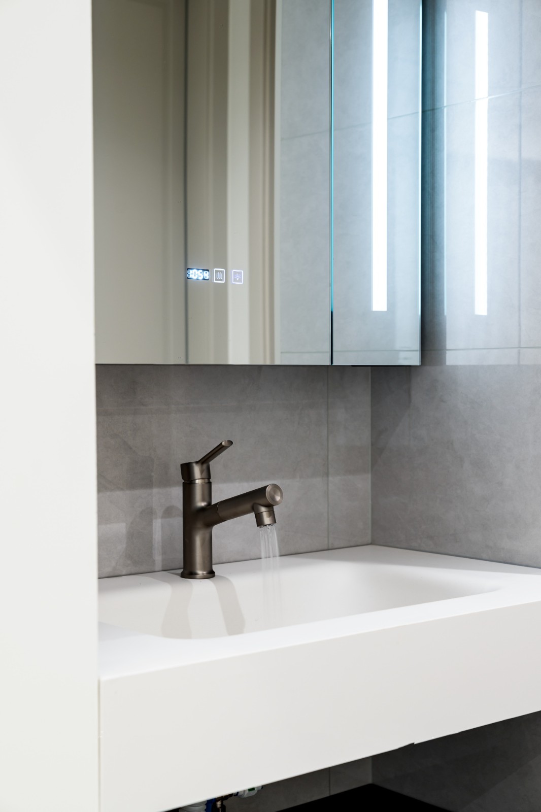 搭配一个智能镜,不仅能满足照明,还可以加热除雾,大大提高个人护理时光的幸福感。