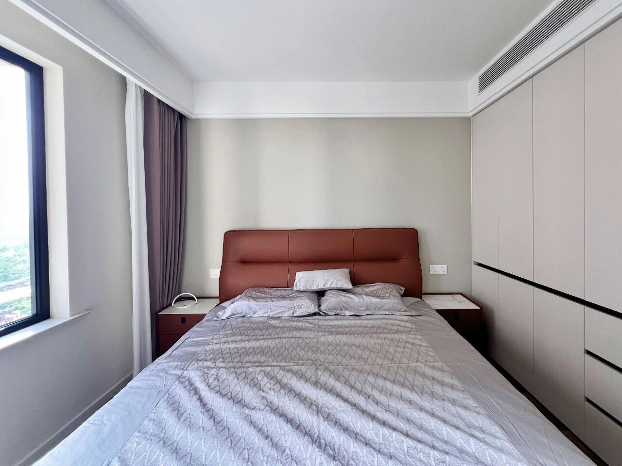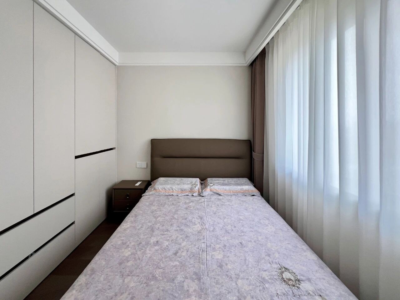 主卧的设计,在于用色彩谱写一首关于“温暖与安宁”的抒情诗。空间以浅色墙壁与木质地板为基调,如同宁静的世界,足以包容一切情绪。