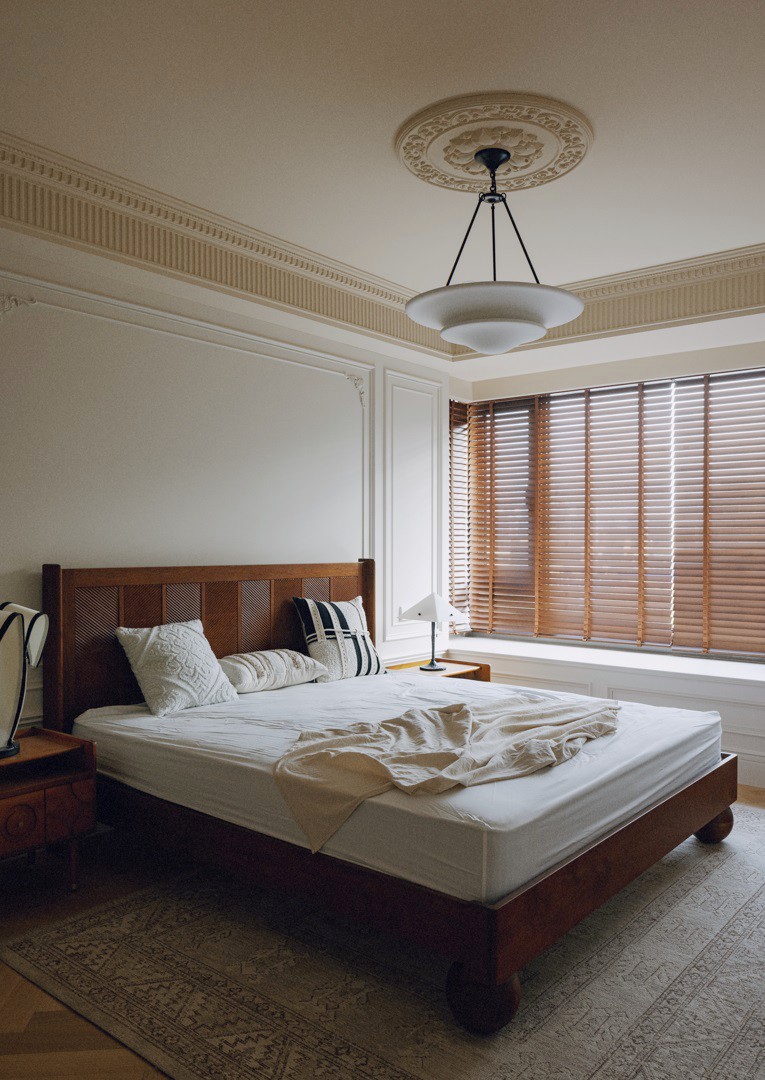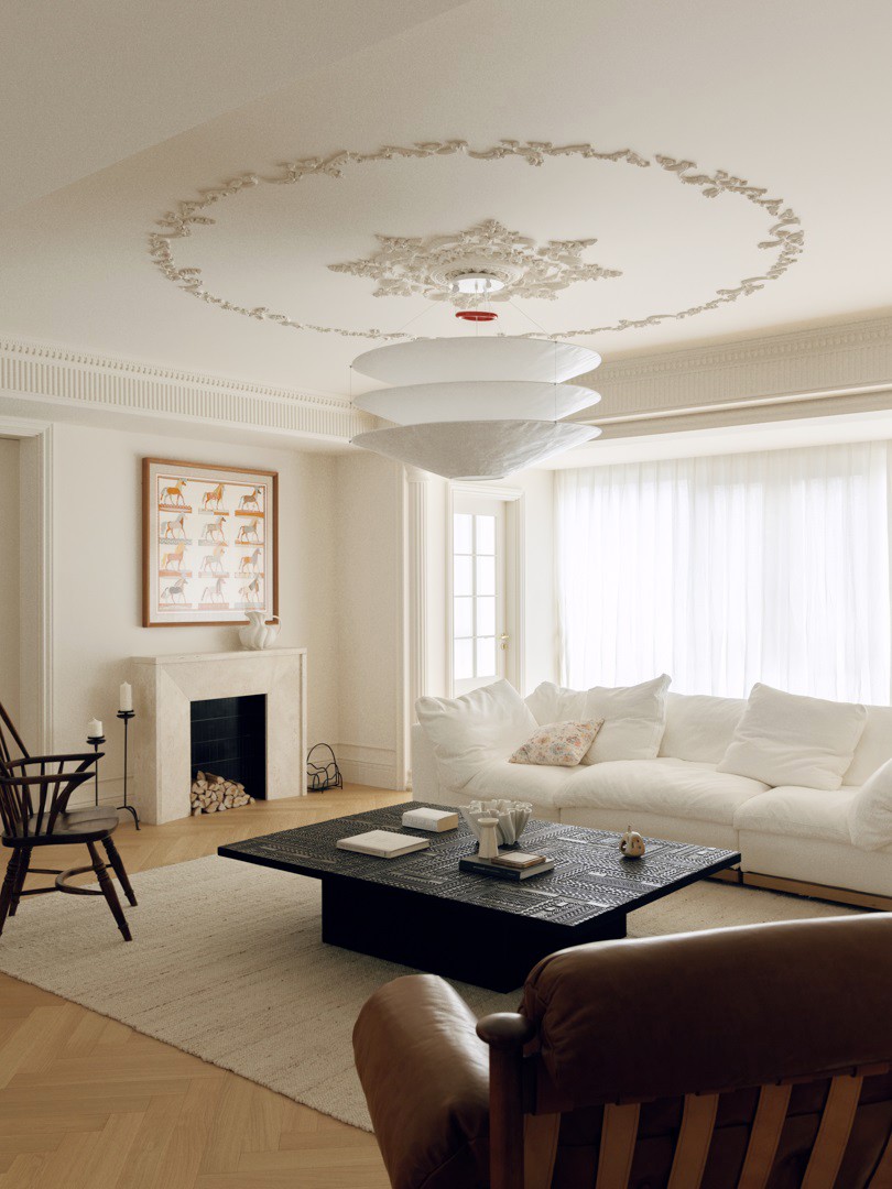 客厅,沉浸在细腻的浪漫之中。吊顶之上,法式线条轻盈舞动,如同晨曦中微醺的云朵,缓缓铺展,将空间温柔怀抱。