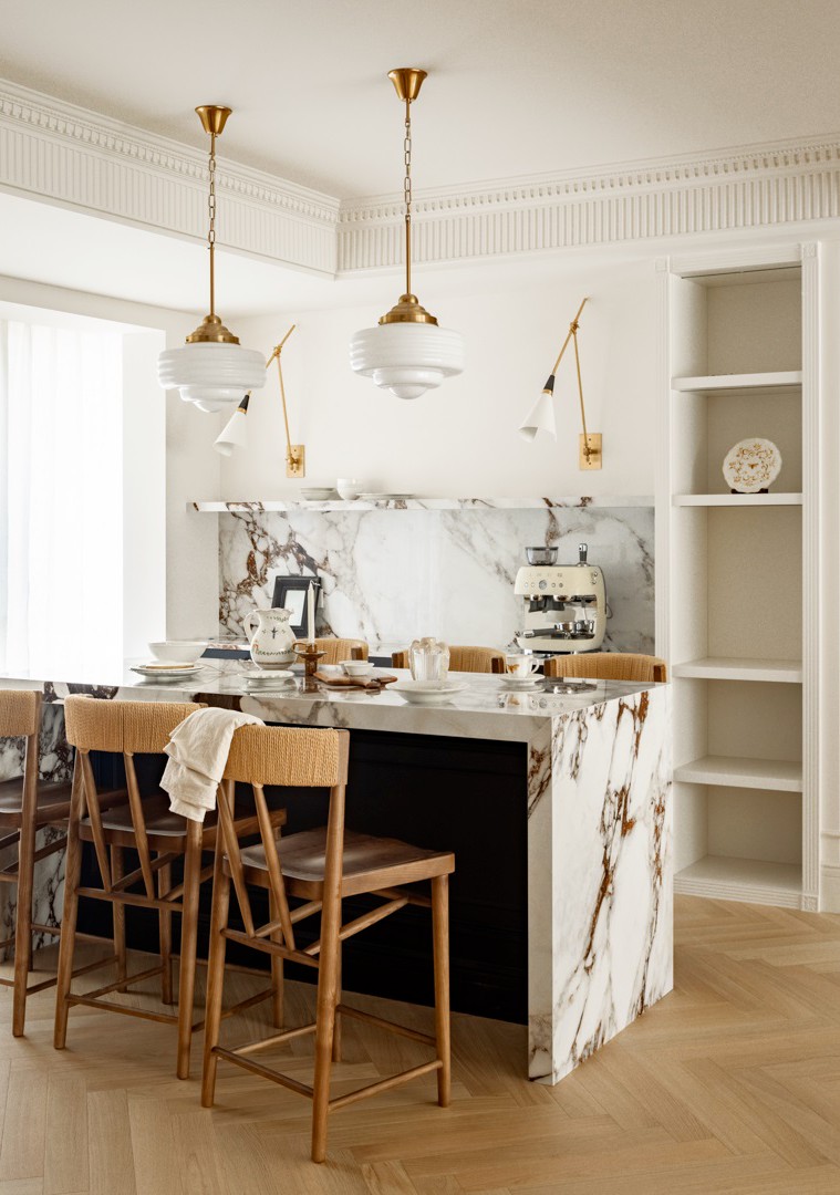 在餐厅的窗畔,阳光温柔漫入,与大理石台面悄然相遇。那抹自然流淌的纹理,如同精致的艺术品,将法式浪漫融入餐厅的每一寸空间,轻轻牵引着每一位踏入其中的人一起沉浸于这场优雅的邂逅。