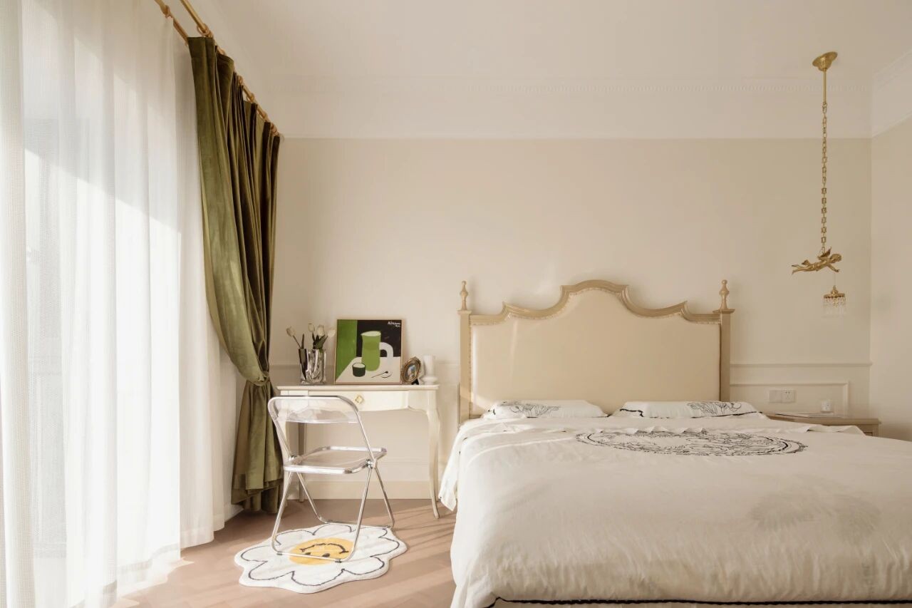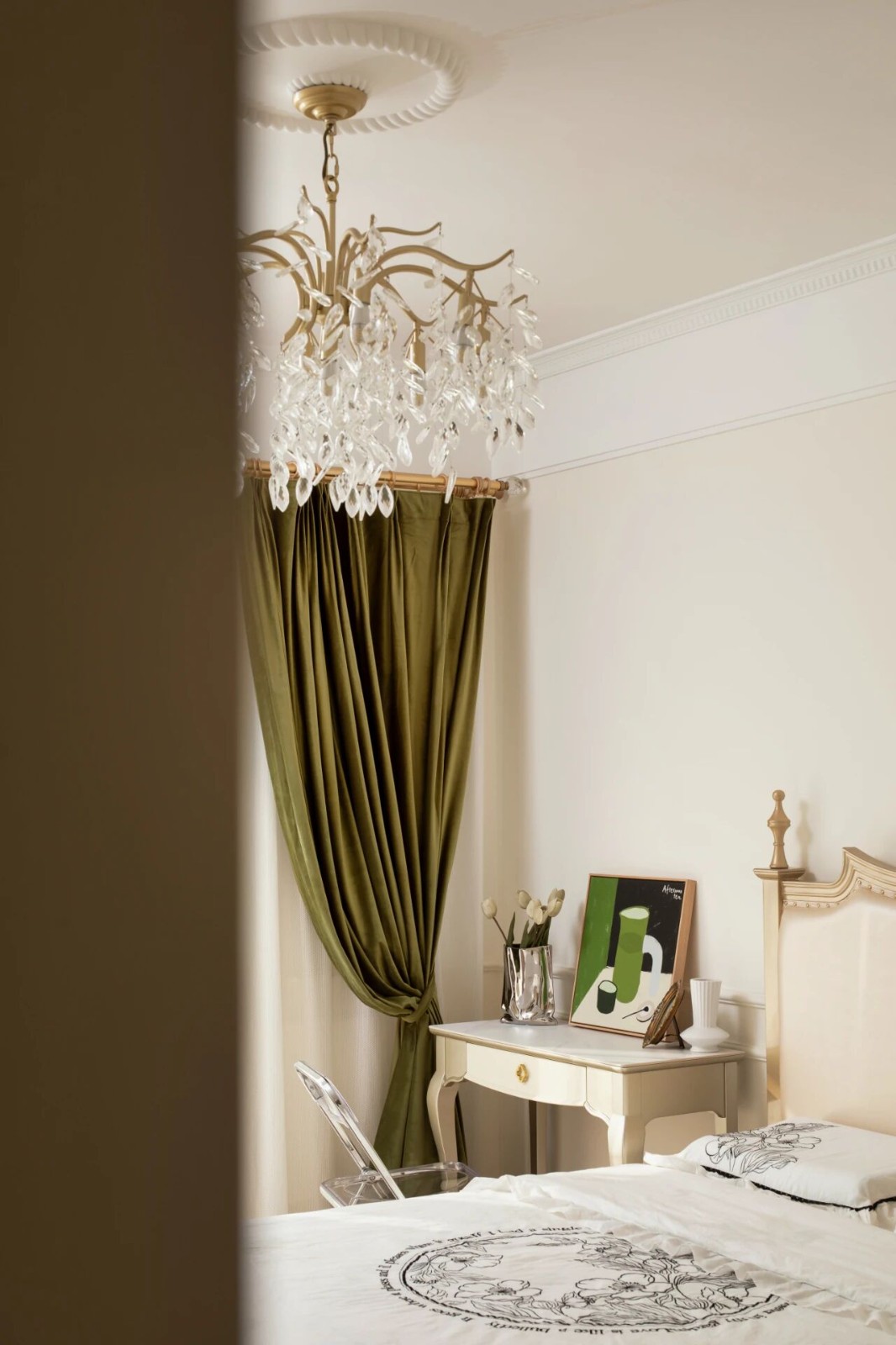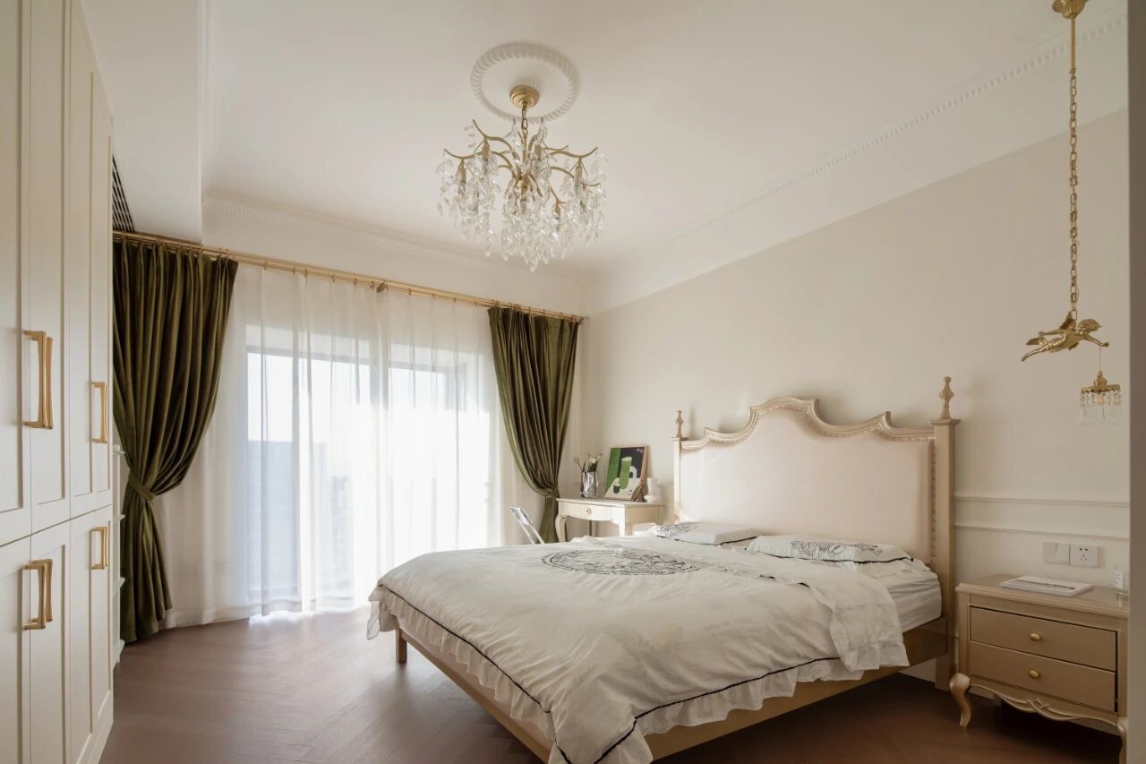卧室是一个特殊的存在,所以赋予了它独特的精神层面,加入吊灯复古元素让整个家浑然一体。