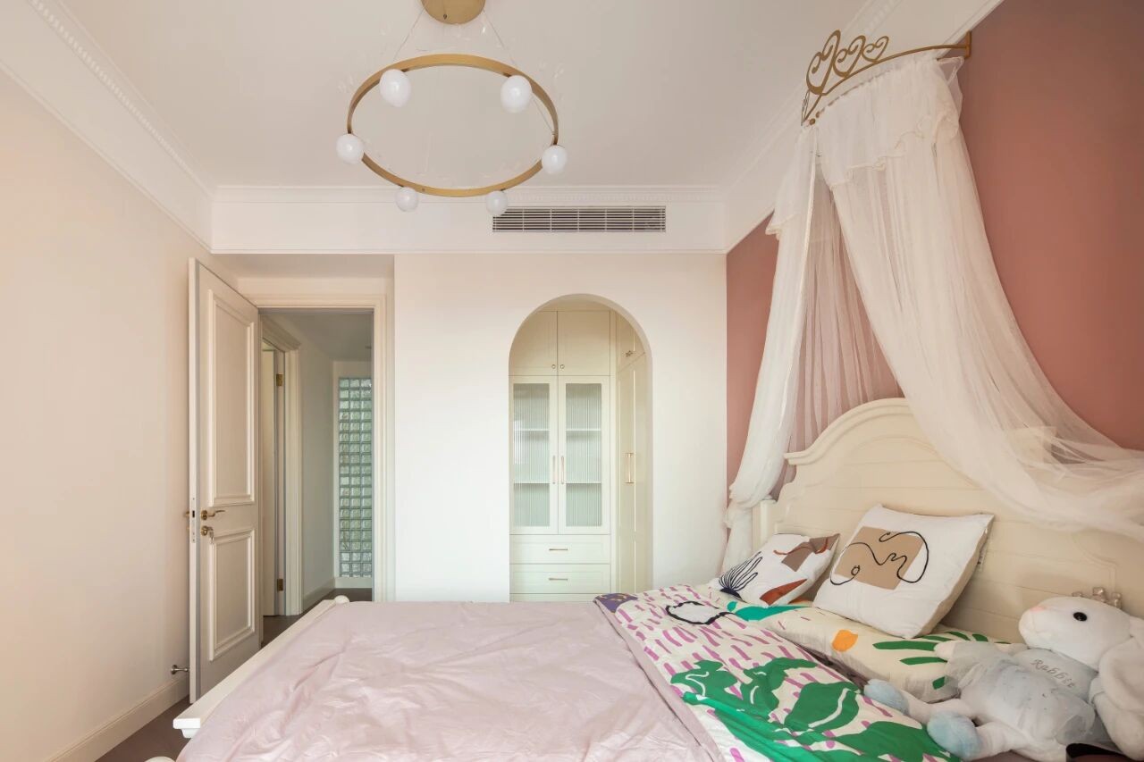 女儿房与主卧相邻,搭配女儿家喜爱公主城堡与耀眼的瑰红色相称。 以孩童成长所需的空间出发引导设计,创造出适合活泼可爱,天性好动的孩子的温馨环境。